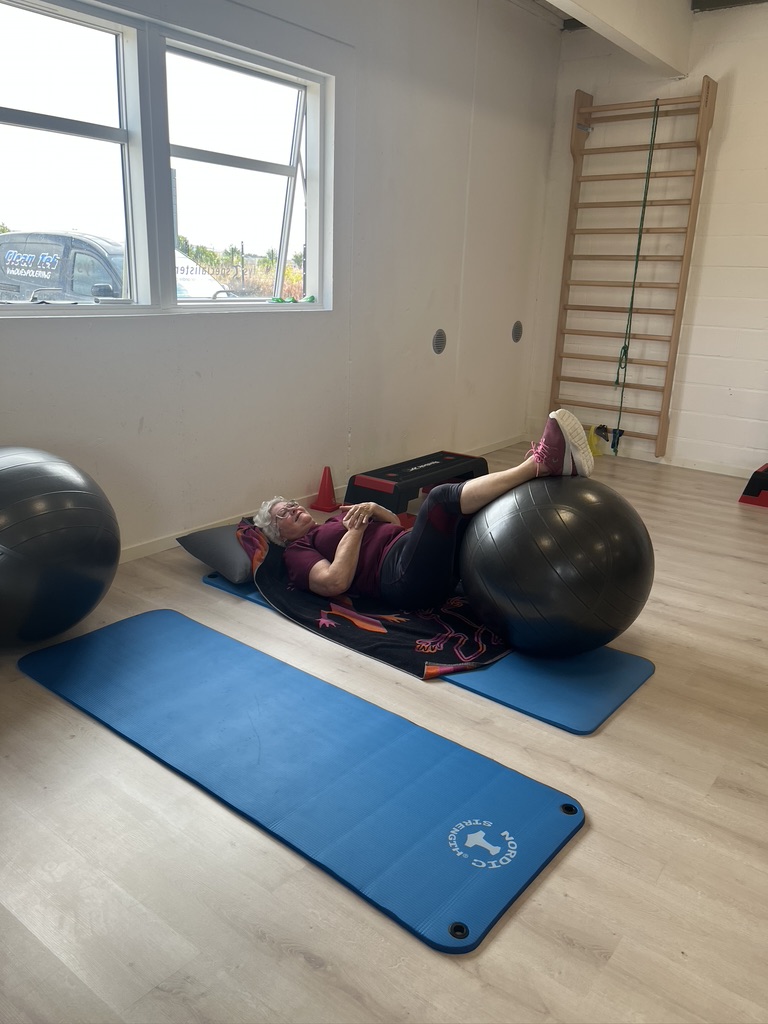 Der anvendes forskellige redskaber som elastikker, små vægte, Redondo-bold og foam roller for at variere og målrette træningen til individuelle behov. Øvelserne tilpasses altid, så du kan træne sikkert og effektivt.